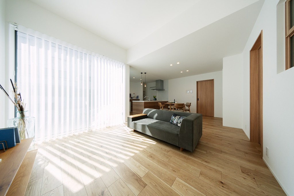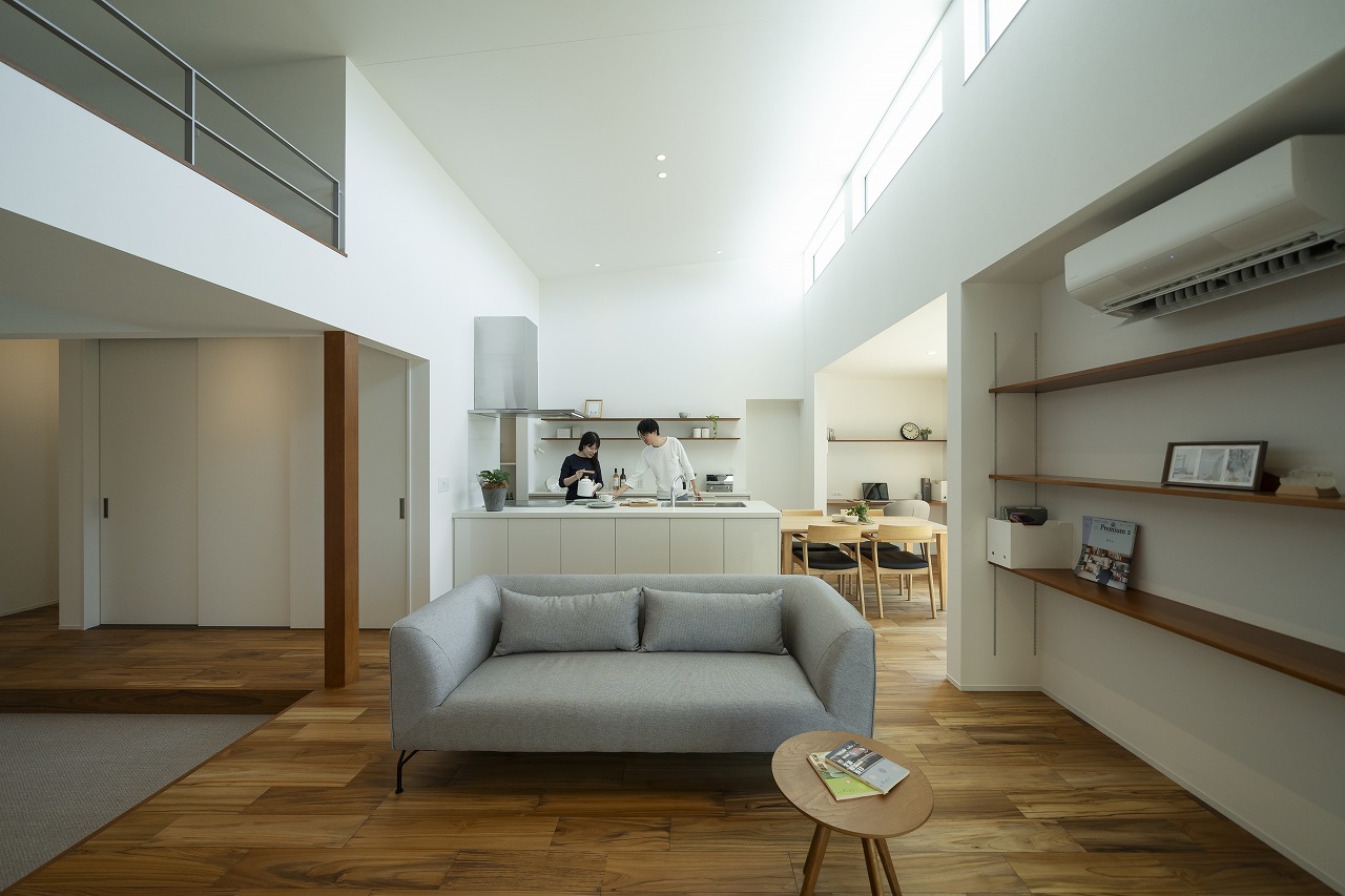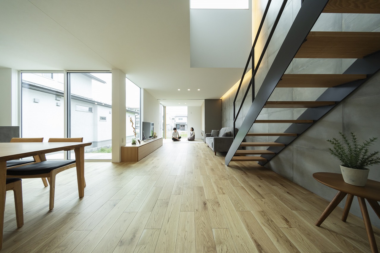 外には少し閉じつつ、中に入れば思わず引き込まれるような縦横&奥へと続く開放感で、街中にあっても心地よく過ごせる住まいです。