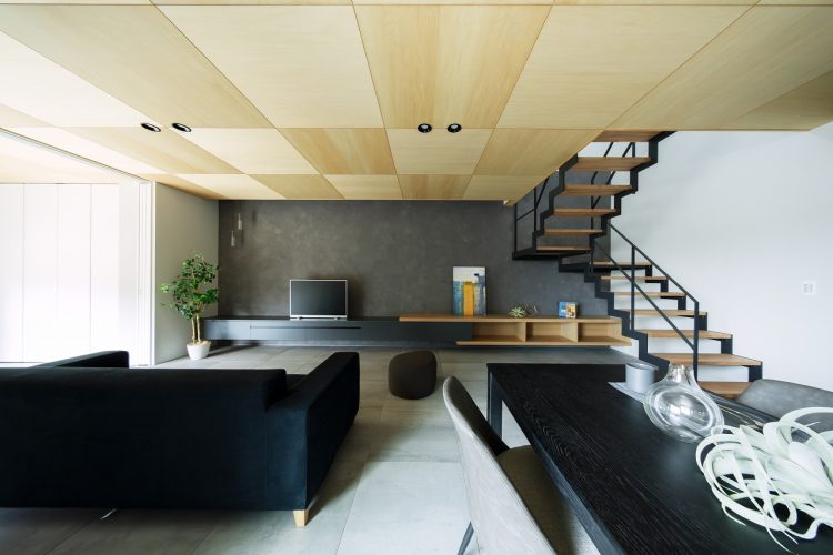 水平ラインや縦ラインを揃えているので、異素材を使用してもすっきりとした仕上がりに。