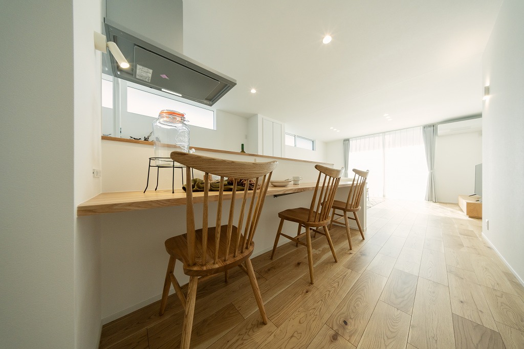 ダイニング兼作業スペースとして使えるカウンターなど、