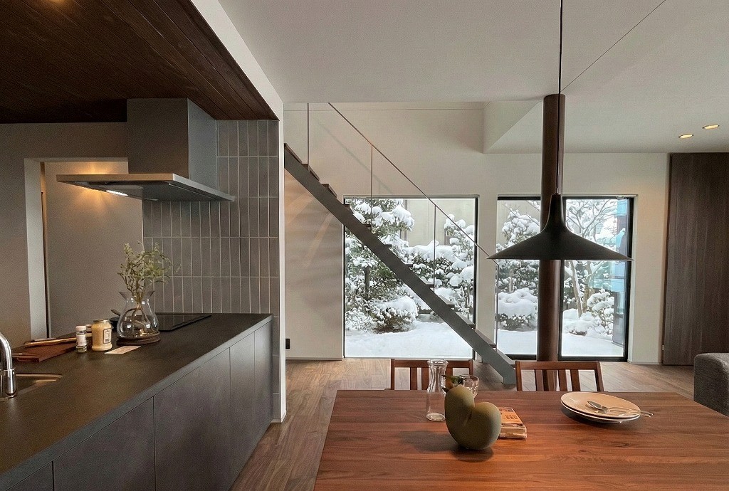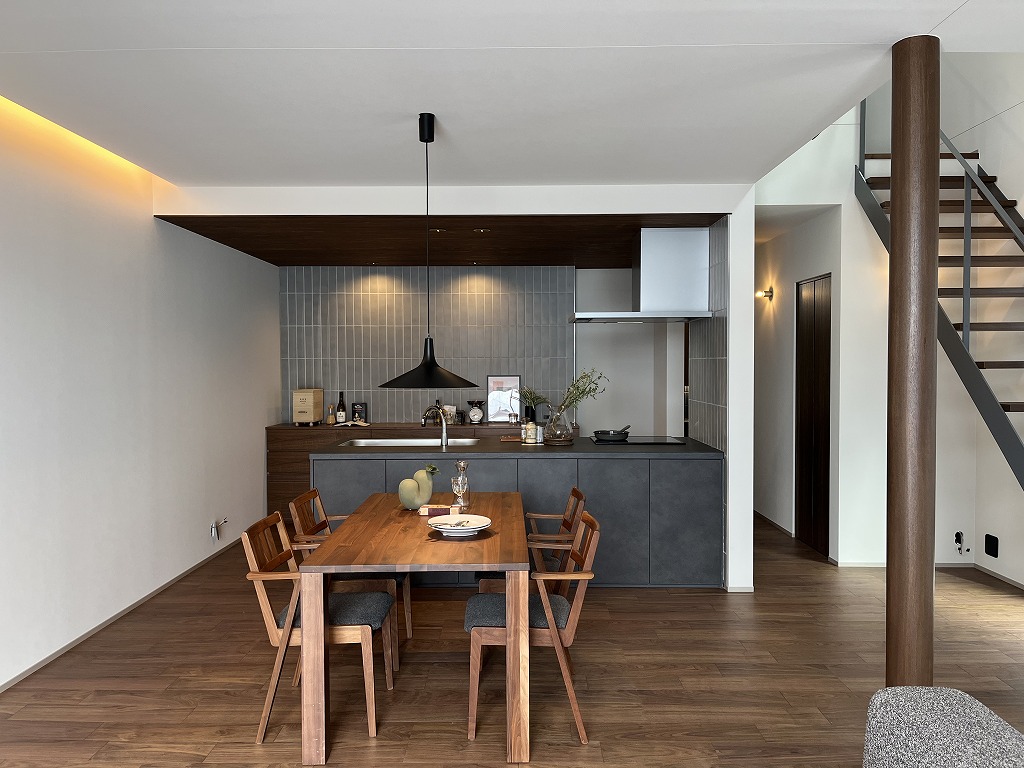 「鉄骨階段×吹き抜け」「デザイン性抜群のキッチン」でお洒落な空間を演出。