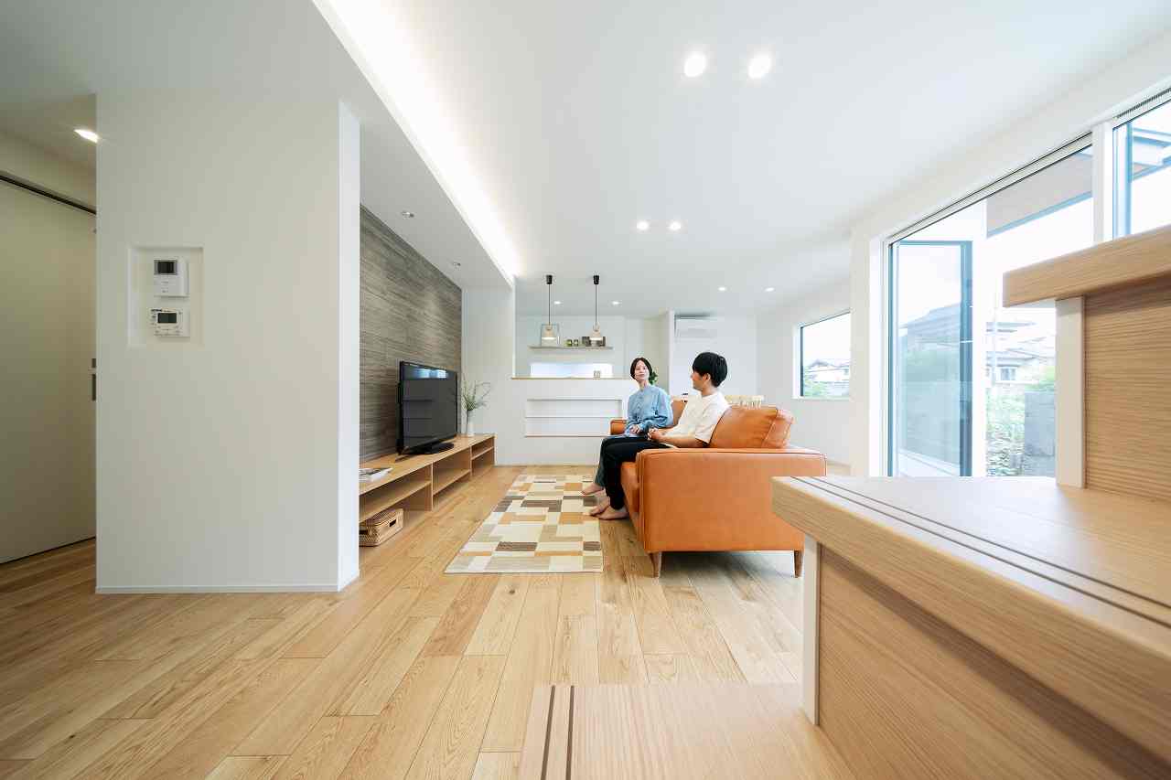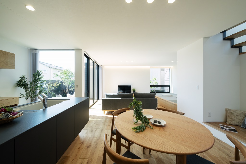家族の顔が見える広々LDK+大開口の窓で明るい空間。