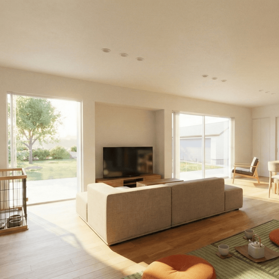 外の景色を暮らしの一部として取り込むことで、実際の広さ以上の開放感と安らぎを感じられます。。