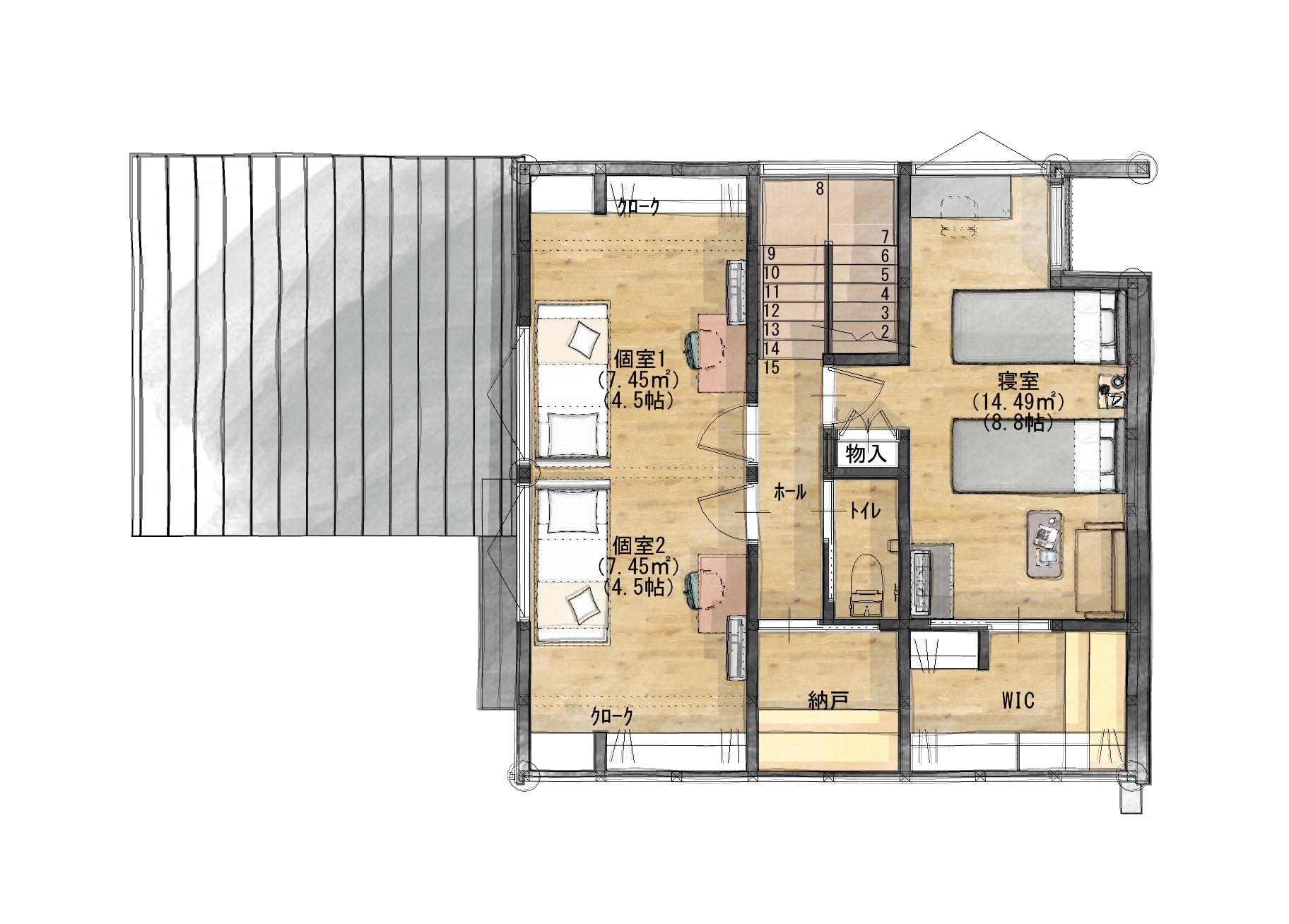 リビング横のフリースペース。床はカーペットになっているのでお子様の遊び場として使用したり、ごろんと横になって休んだり… 多彩な使い方ができます。