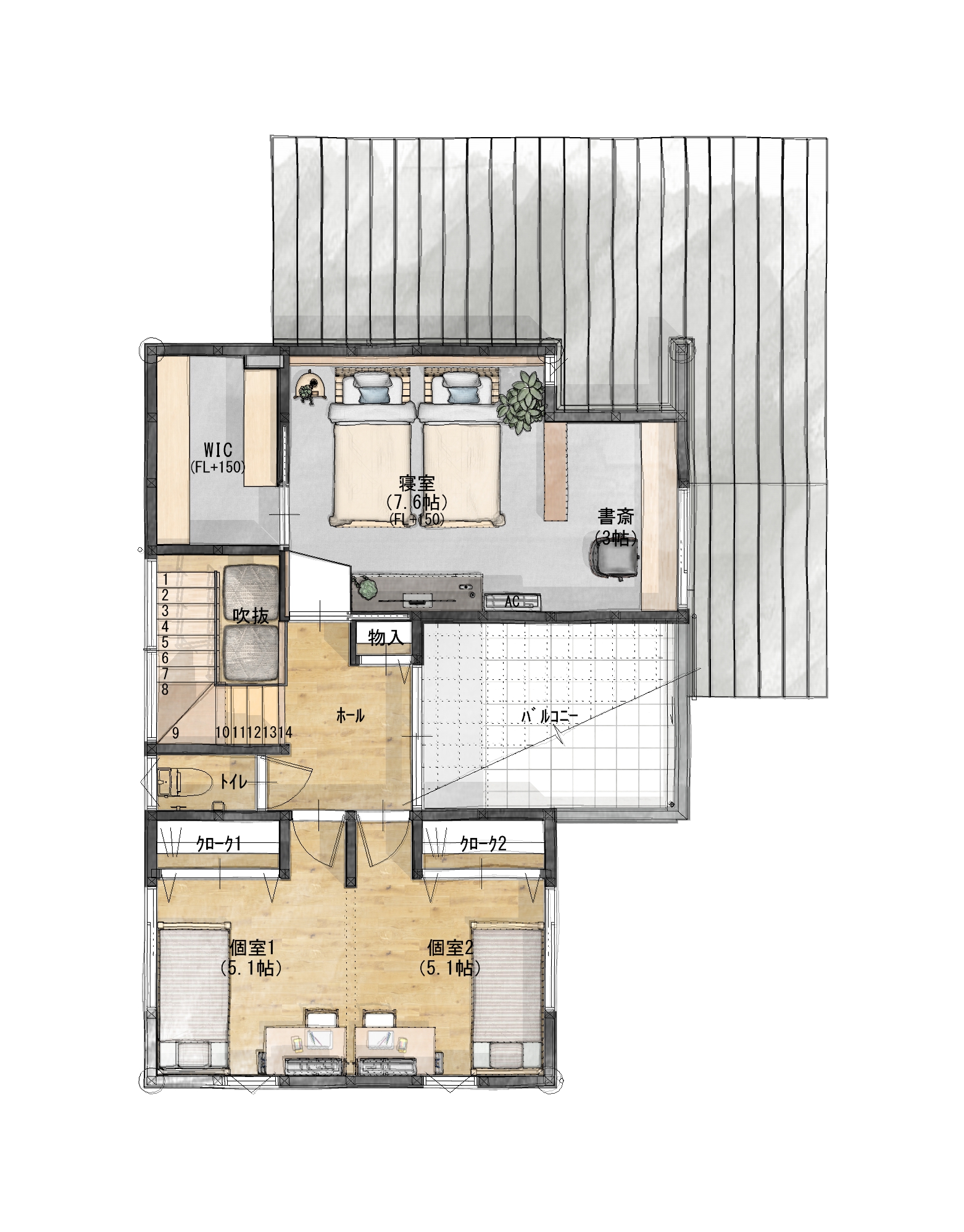 どこに居ても家族の気配を感じられる、エーシンホームらしさを詰め込んだ1邸。
