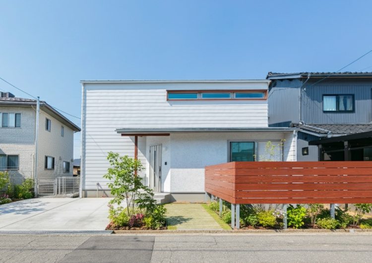 異素材の対比が美しい外観。